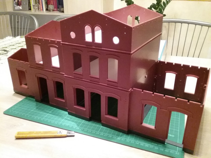 Ce modèle va être profondément modifié car en plus d’un surdétaillage et une patine hyper réaliste (ce serait dommage de s’en passer à cette échelle) … Je compte bien réaliser un aménagement intérieur complet avec éclairage, tapisseries, plancher, mobilier et personnages !