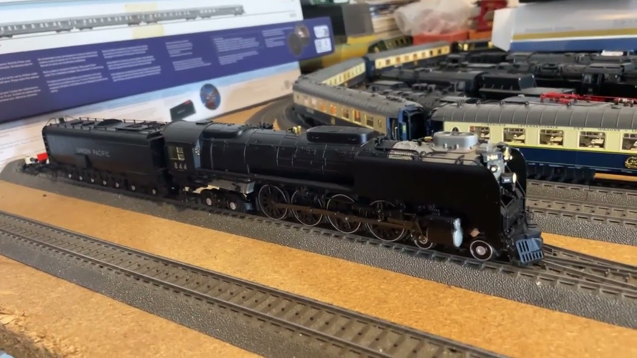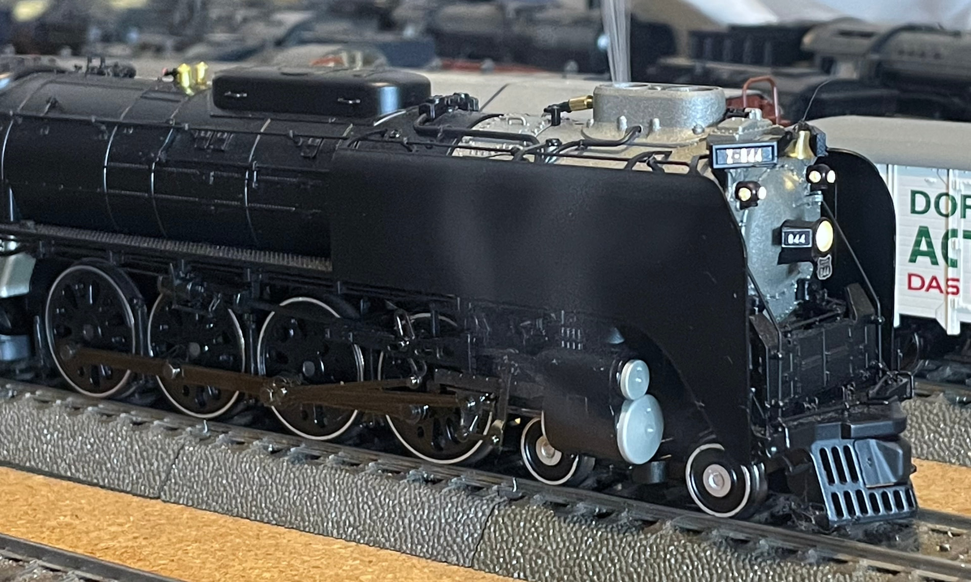 Il s‘agit de l’UP 844, une imposante machine dont les essieux 242 (ou 4-8-4 à l’américaine) lui donne le surnom de “Niagara”. Elle porte la référence 37984 chez Märklin.