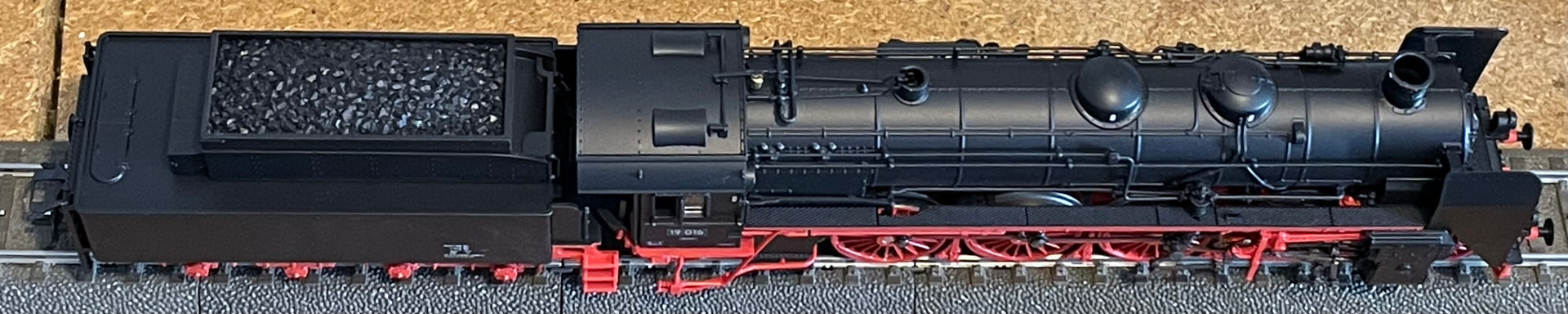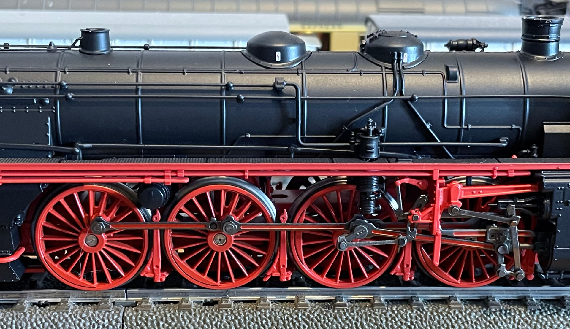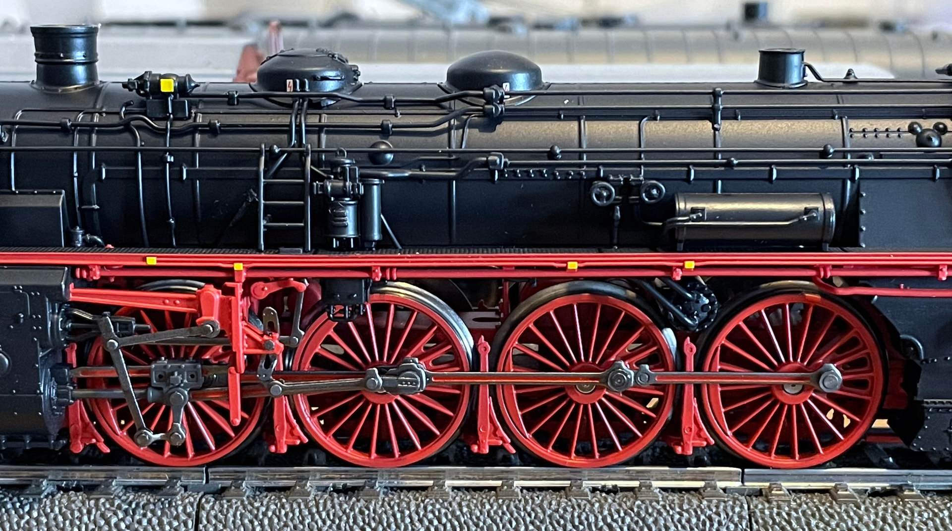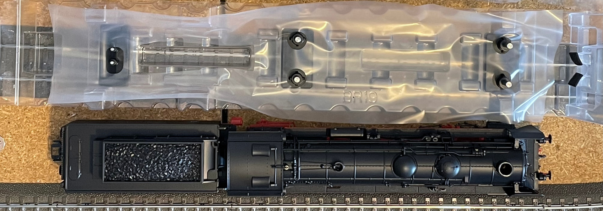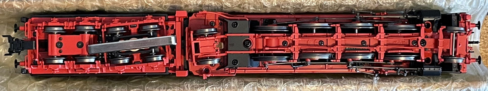 Afin de stabiliser la machine au mieux dans son berceau, Märklin a installé des plots métalliques en dessous de la locomotive qui la verrouillent, bien vu ![]()