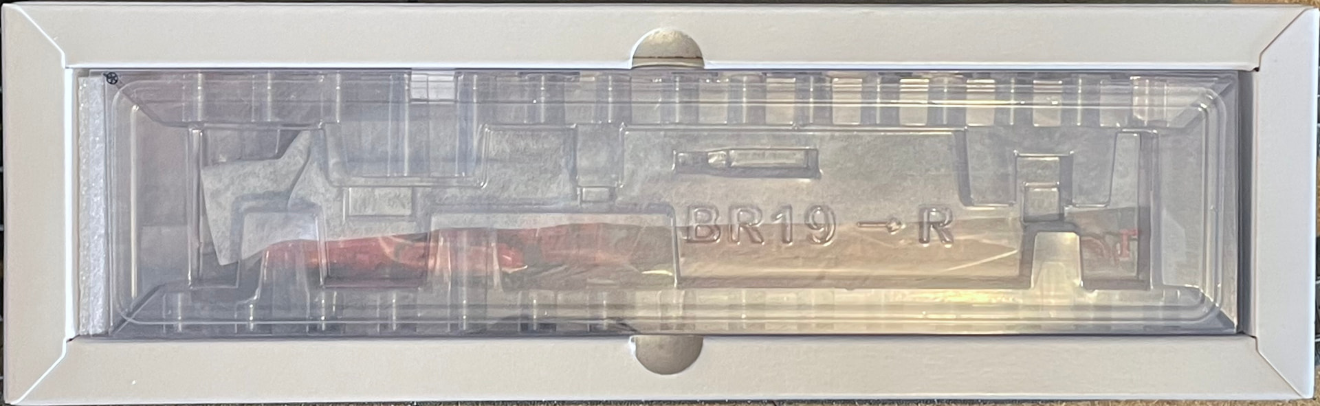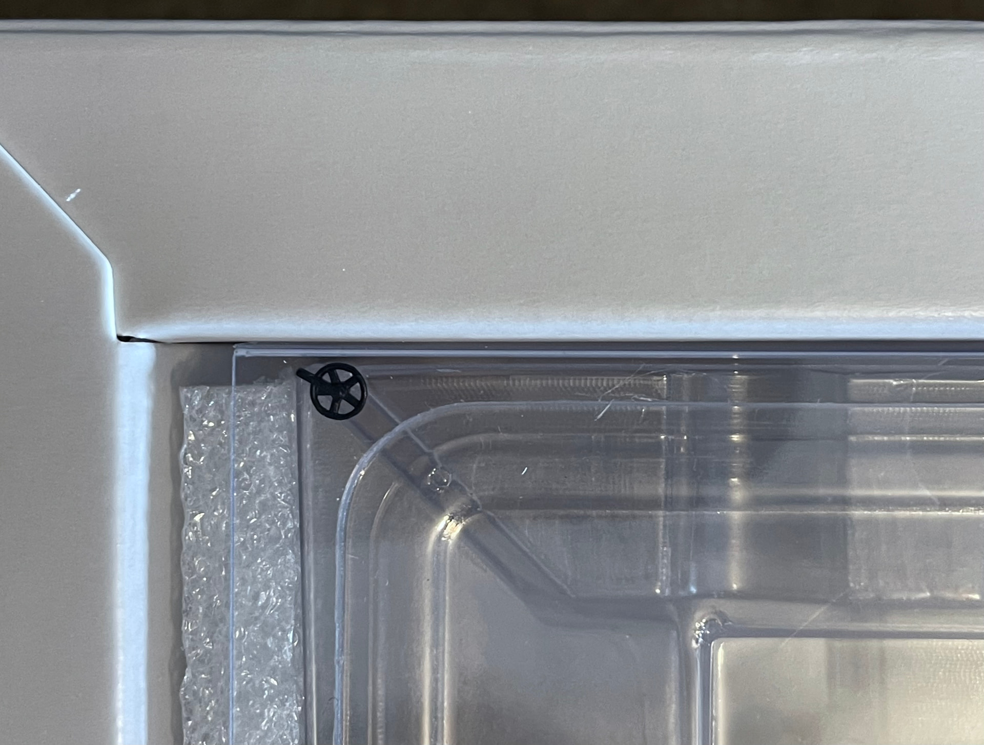 Le couvercle glissé latéralement, on découvre l’emballage classique chez Märklin, la machine étant bien protégée dans un berceau en plastique rigide transparent: