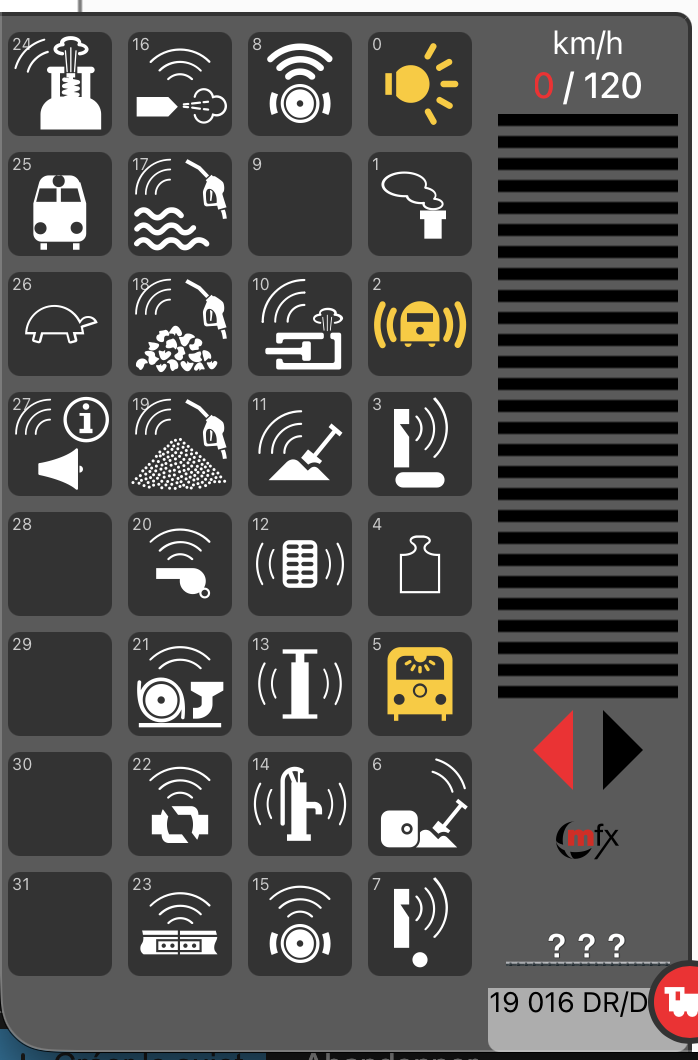 … en détectant et créant dans la centrale (si compatible MFX) la locomotive avec toutes ses fonctions digitales …