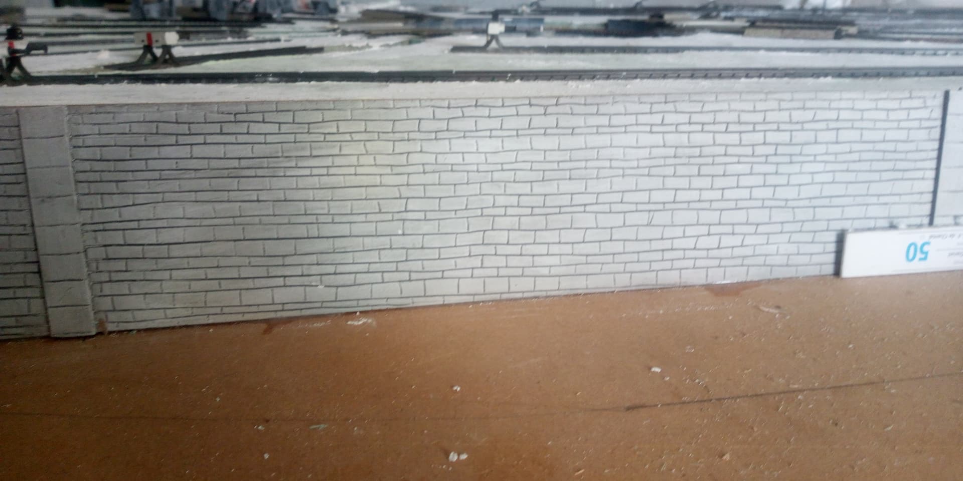 La photo de mon mur de soutenements est un prototype pour évaluer le rendu de la gravure, la peinture tiens bien, sur mes futurs murs j’ai passé une couche de peinture de fonds Tamiya qui sert beaucoup en modélisme et qui va encore améliorer l’accroche. Le mur faisant pas loin de deux mètres va être peint en surface complète pour avoir une transition agréable à l’oeil.