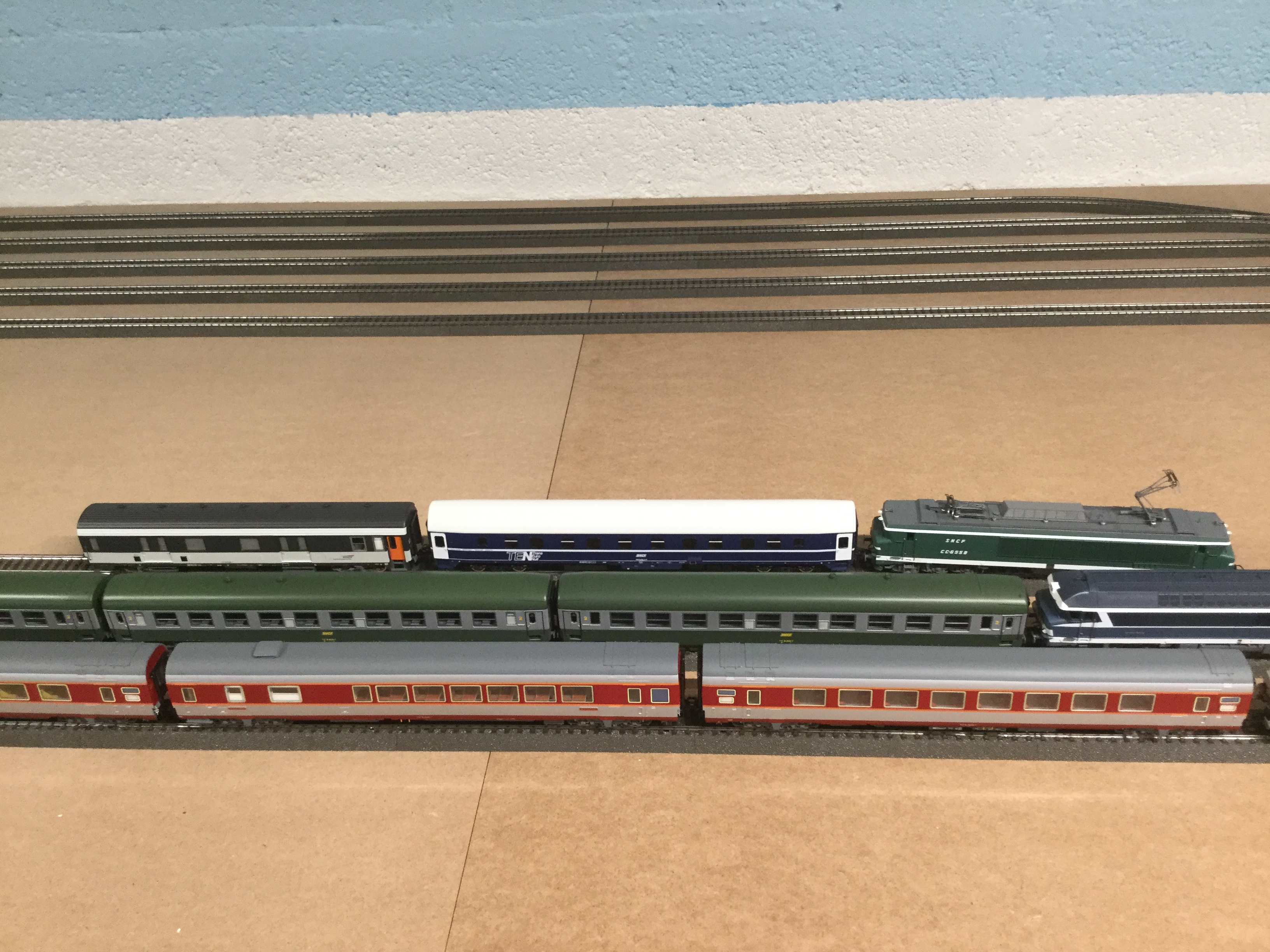 Photos suivantes: je n’ai pas résisté d’installer mes dernières rames. Principalement du Roco car mon réseau sera français. Néanmoins 90% de mon parc est du Marklin.