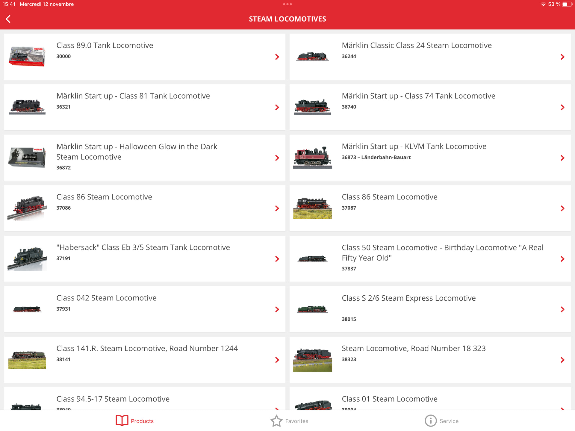 Tu trouveras l’app simplement en cherchant « Marklin » sur ton Apple Store comme indiqué plus haut. Les fiches techniques font mention de la référence TRIX équivalente pour les locos.