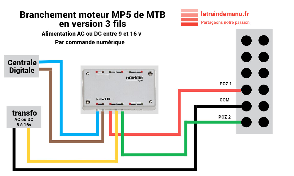 Photo 3794 : Plan de branchement électrique du moteur MP5 de MTB, commande numérique. Source : letraindemanu.fr