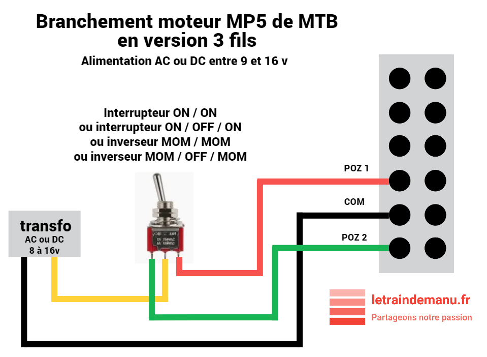 Photo 3793 : Plan de branchement électrique du moteur MP5 de MTB, commande manuelle. Source : letraindemanu.fr