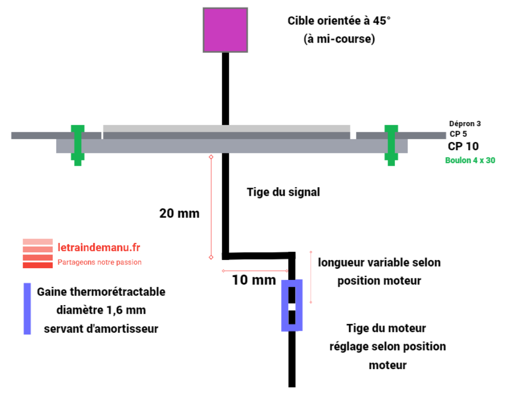 Photo 3795 : Plan de montage du support pour signal carré violet mécanique. Source : letraindemanu.fr