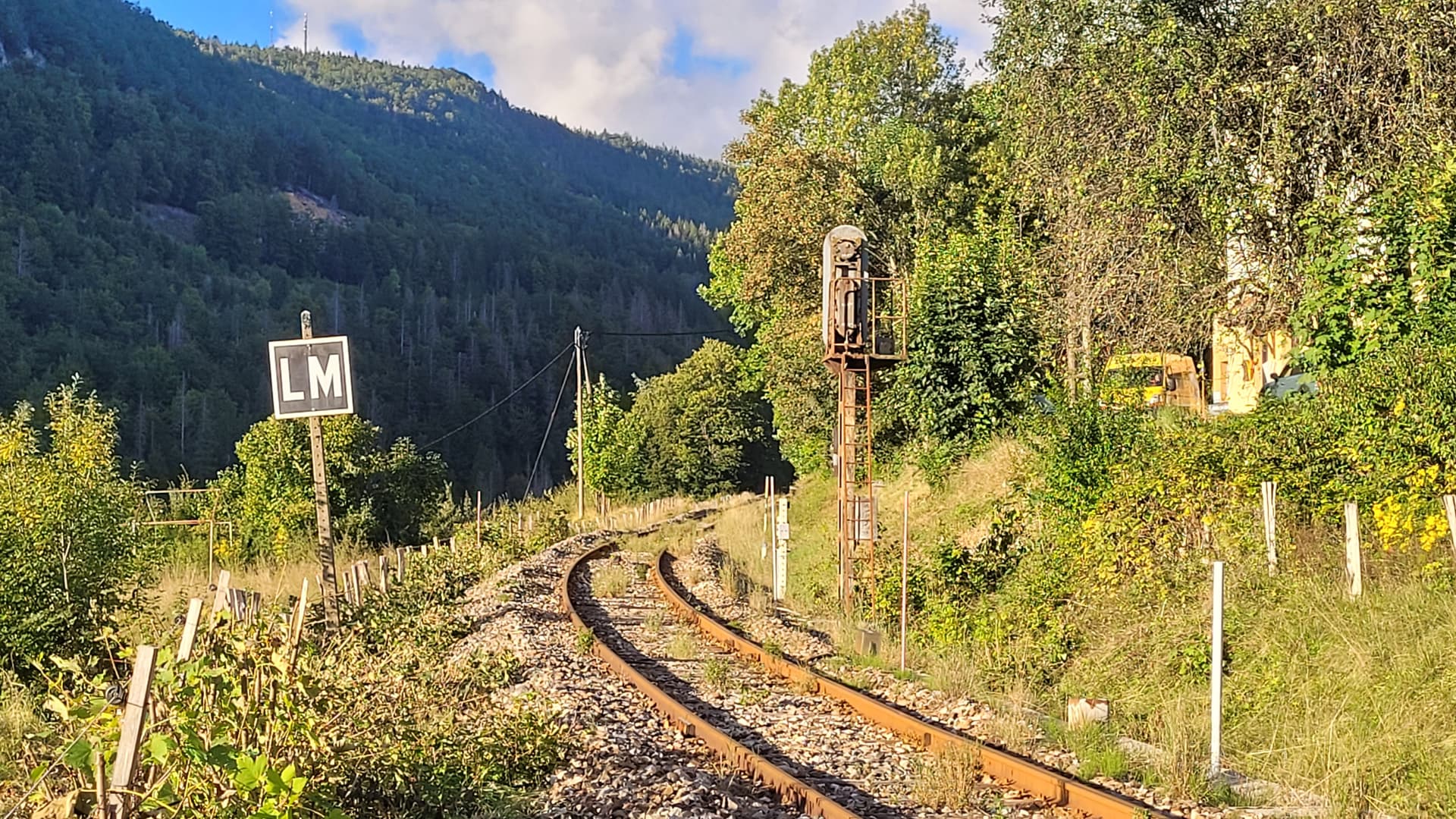 Exact ! La photo est prise à la sortie de la gare de Morez entre les deux branches :