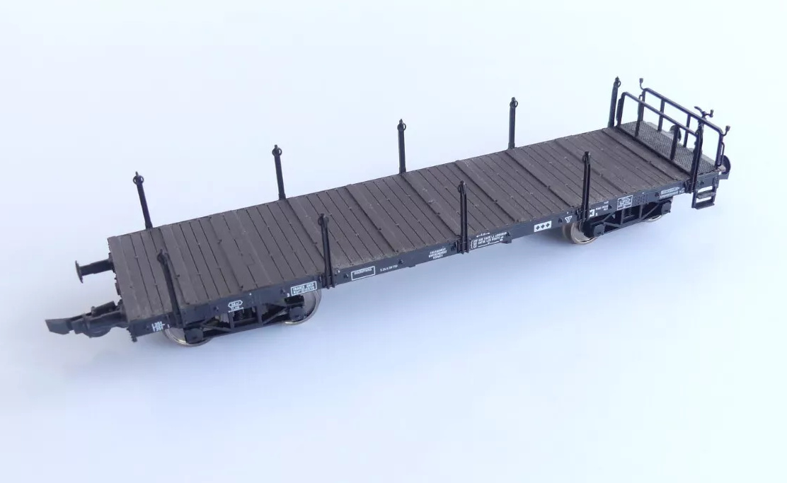 Mon choix s’est porté sur un plat à boggies pour charges lourdes de type Rlyf2 10536 SNCF (fabriqué en son temps par Fleischmann Ho sous la référence 5285 F1 K). C’est un plat sans guérite de serre-frein et avec des ranchers.