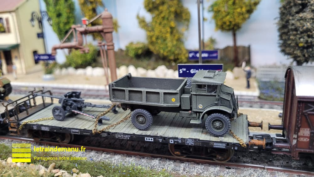C’est en fait l’exposition de RailExpo Dreux qui fut l’occasion de me lancer sur cette voie avec l’acquisition de quelques wagons de seconde main déjà chargés de véhicules militaires (Photo d’en-tête ci-dessus). Pour autant, ces derniers étant déjà collés, ils rendent difficile la patine.