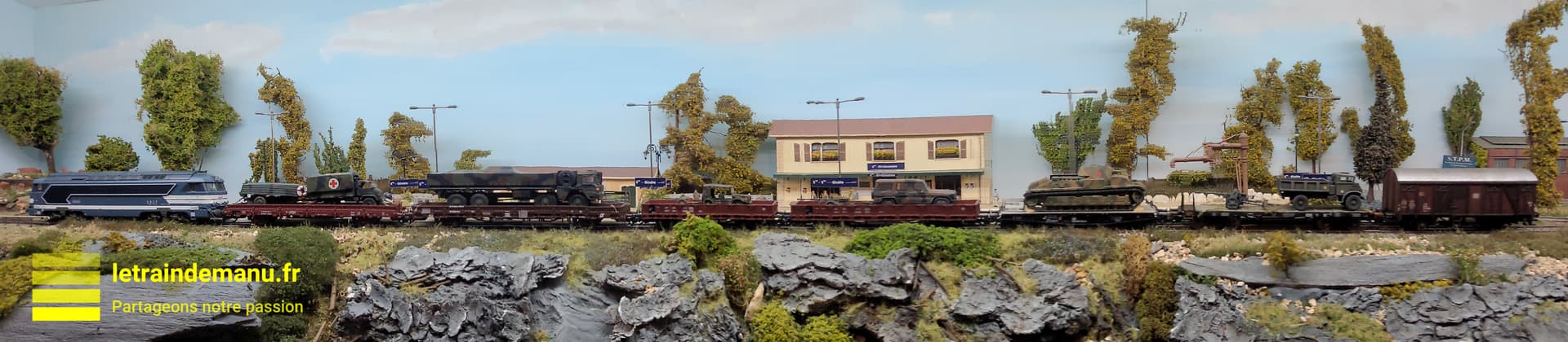 Épisode 462 • Les rames marchandises thématiques permettent bien souvent de concilier matériels roulants ferroviaires et véhicules routiers, tout en offrant aux spectateurs de notre réseau des convois qui sortent de l’ordinaire. Pour cette nouvelle rame en devenir, j’ai choisi du matériel militaire.