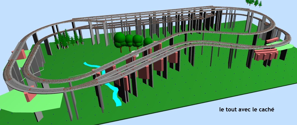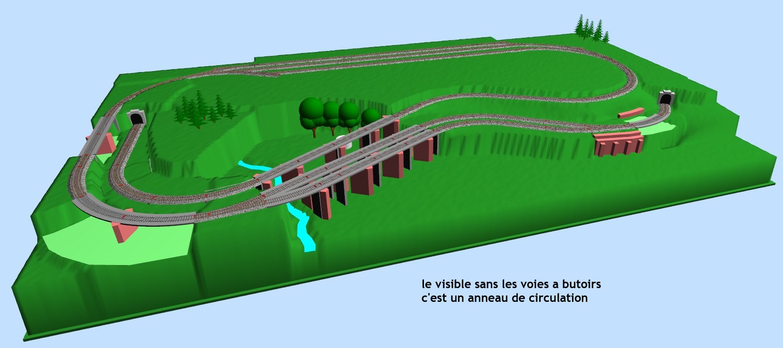 ‘M’ boucle pentes max : 2.5 % , table 3 m x 1.7 m avec bâtiment gare amovible 10 cm