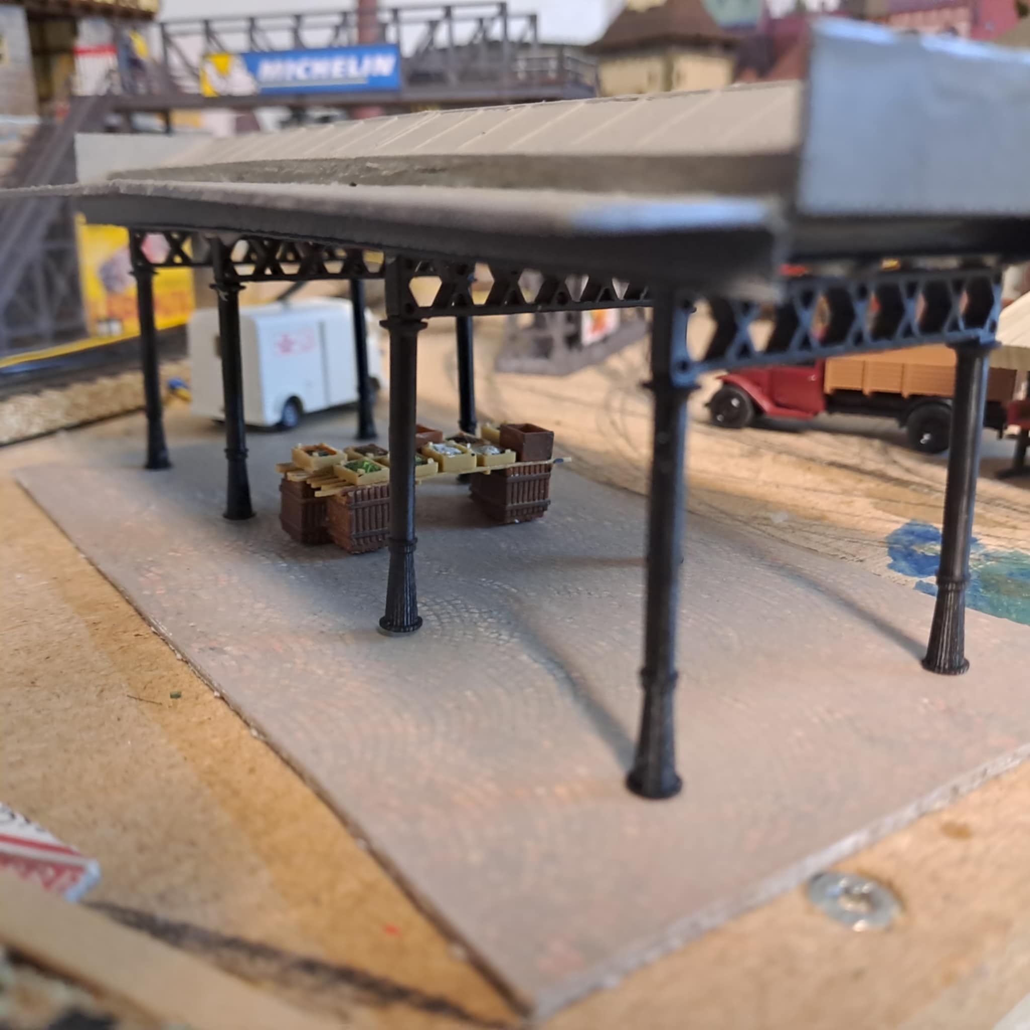 Pour remplacer les piliers de la maquette, j’ai fait appel à un copain qui fait de l’impression 3D pour réaliser du surmesure et avoir une hauteur de toiture un peu plus importante pour mieux montrer les futurs étals.