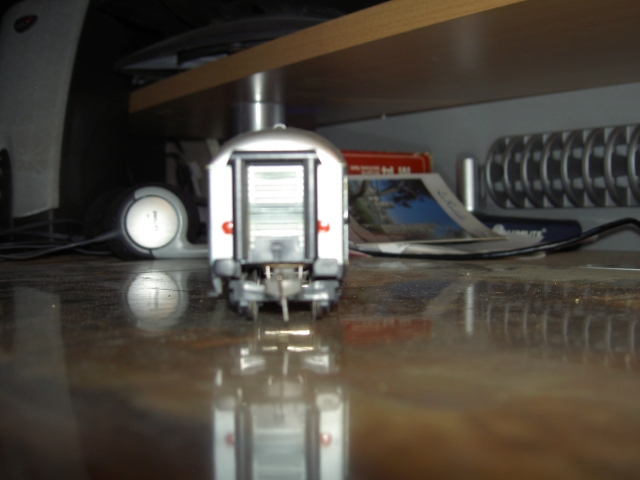 déjà les tampons coller de travers, la caisse mal clipsée sur le chassis, d’où une déformation de la caisse si stocage trop prolongé, les boggies sont durs et de plus pas assez de débattement, des roues qui auraient pu aller sur le trois rail, mais manque de bol, tout plastique, les roues aussi, donc poubelle ![]()