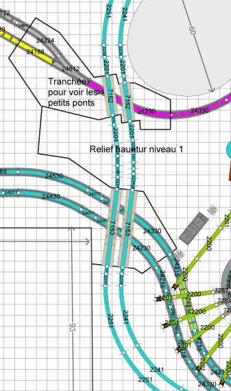 Sur l’une des section basse visible, avec actuellement 3 voies, je lui ai proposé d’en profiter pour faire une section avec voie banalisée centrale. Un peu comme on en trouve sur le PLM. Avec une jolie signalisation, voila qui pourrait faire une belle animation.