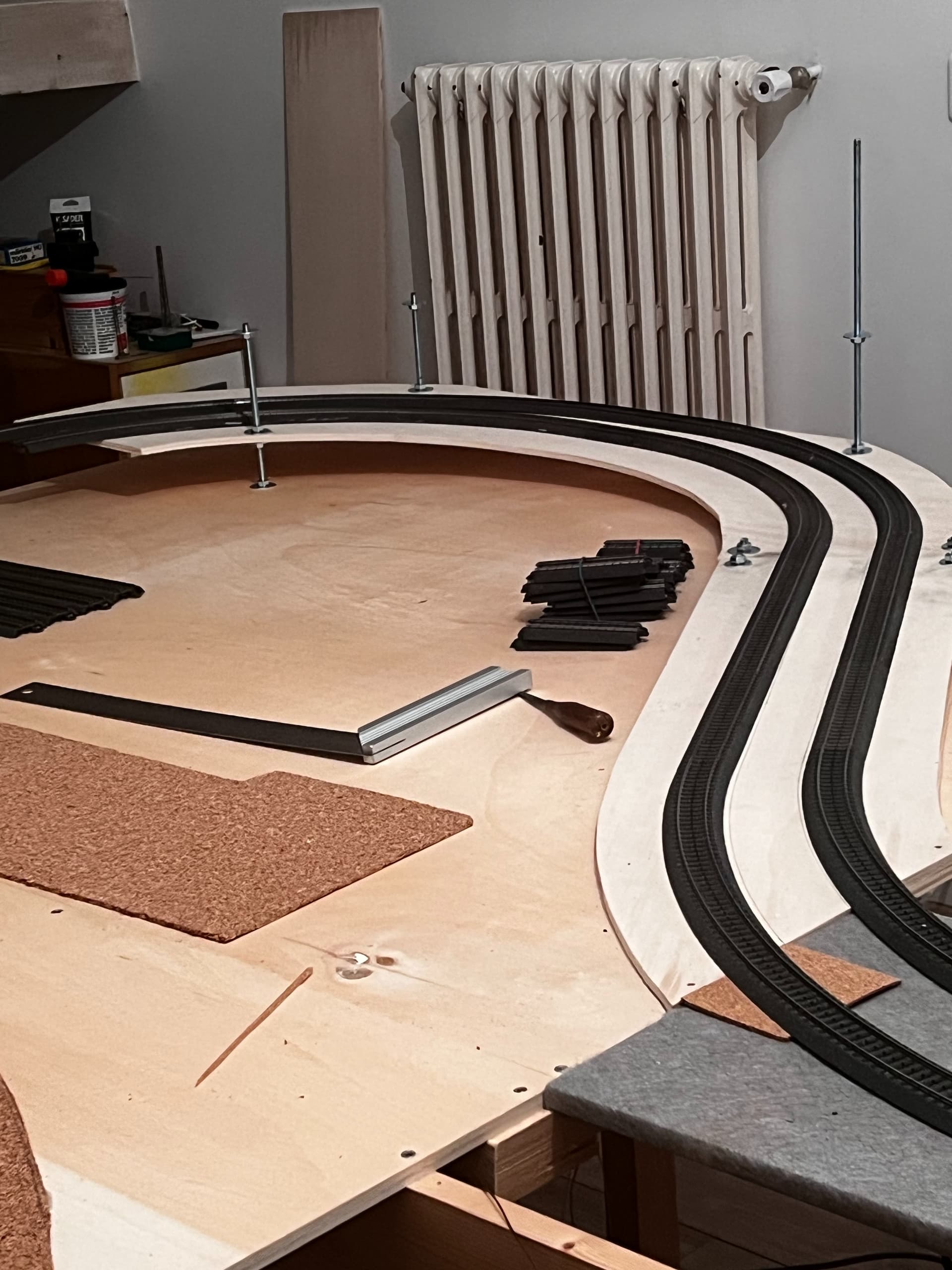 On a bien bossé : le 1er niveau est presqu’achevé. Il faut maintenant poser le pont a double voie avec des arches métalliques à voie M integrée. C’est une référence qui plairait bien a l’ami @Pierroviaire sur son réseau vintage.