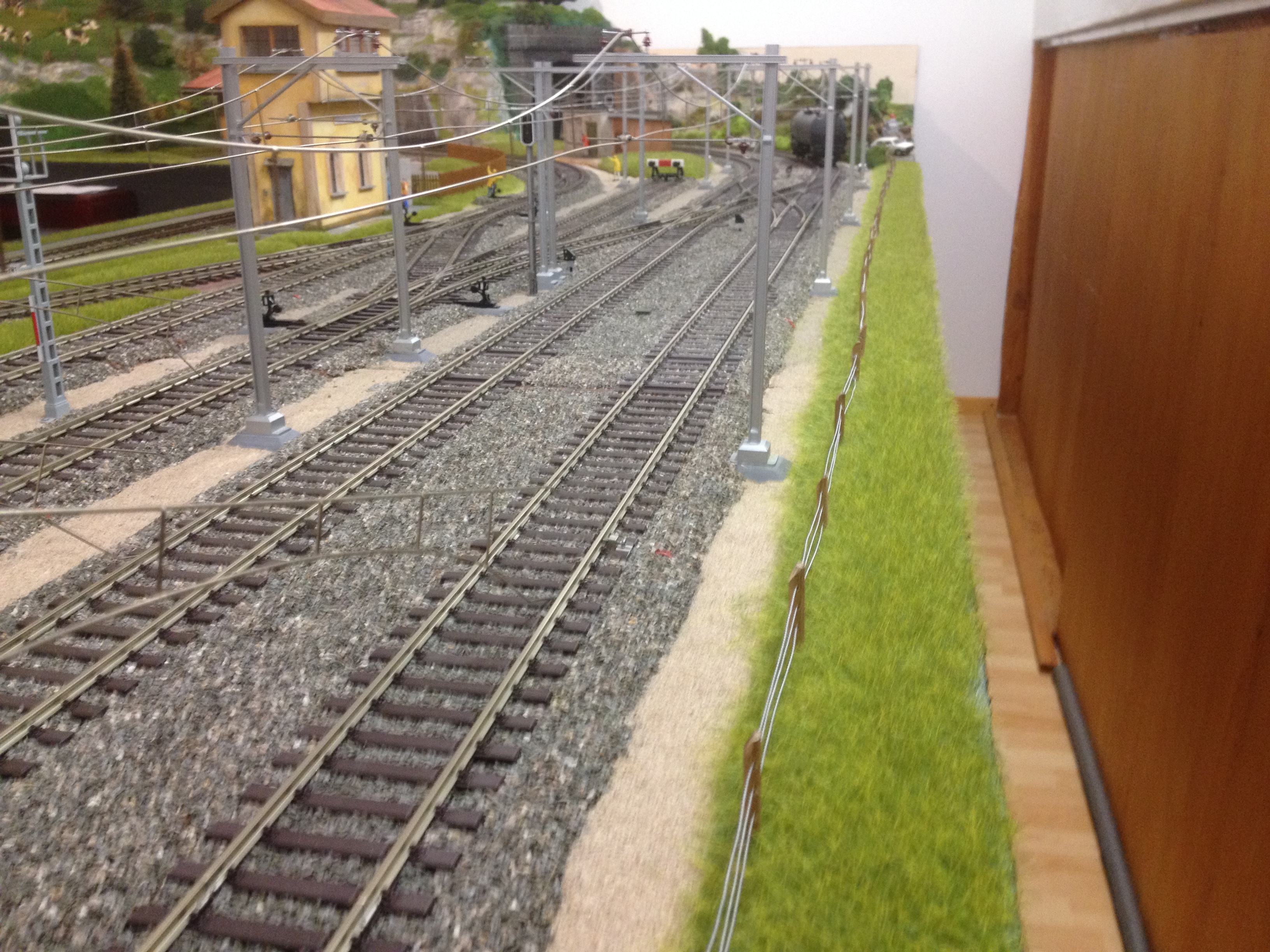 Avec Michel , passionné des trains Suisse et membre de l’ATCAR, nous avons posé la clôture de protection des voies. Je me suis inspiré des photos sur la ligne du Gothard à proximité de Wassen .