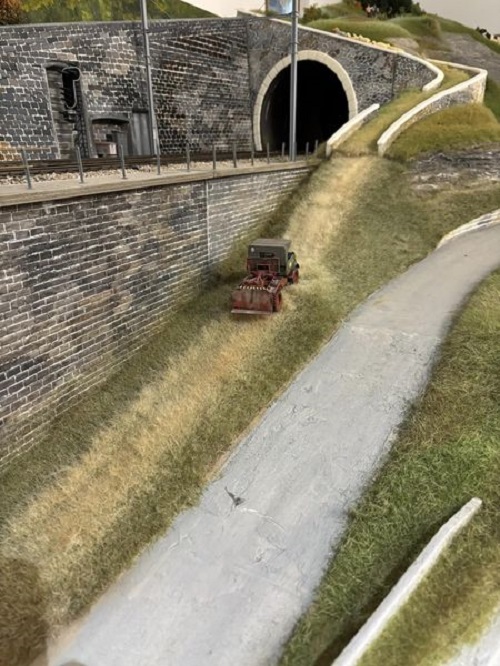 Les travaux se poursuivent. Il reste la montée sur le pont et la partie devant la muraille à terminer. Ensuite le module de décor dans le virage devant la halle a marchandises avec la réalisation de pieds de vignes.