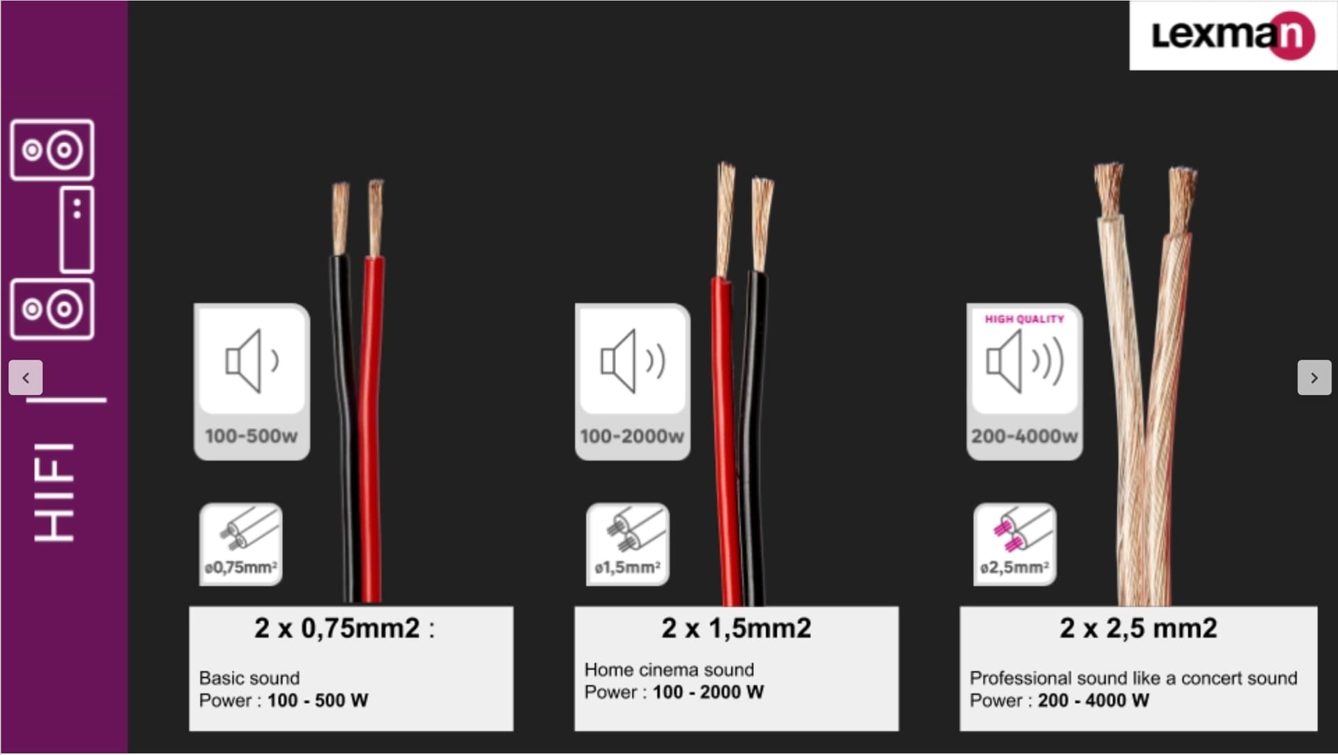 Perso, j’utilise pour le feeder du câble HIFI 2,5 mm2. Pour chaque canton, j’ai un nouveau départ à partie du feeder en câble HIFI toujours en 0,75 mm2. Acheté dans les grandes surfaces de bricolage au logo vert dont la marque distributeur est sur la photo ci-dessous :