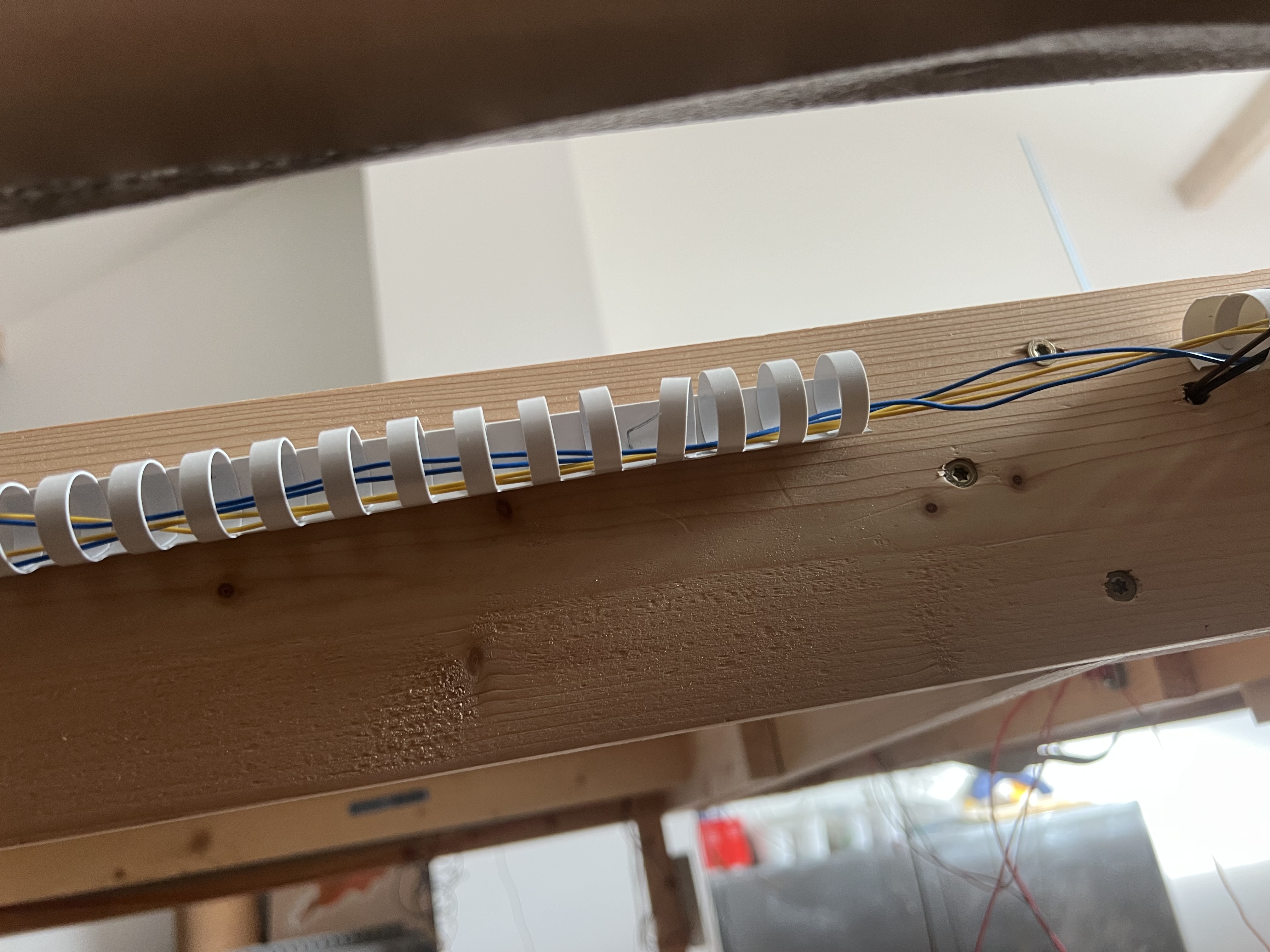 mais comment fais tu pour les cables à faire courir sous le contrepalqué et les bandes de roulement dont l’épaisseur est généralement de 10 mm max 15mm ou tu ne peux donc pas les visser?