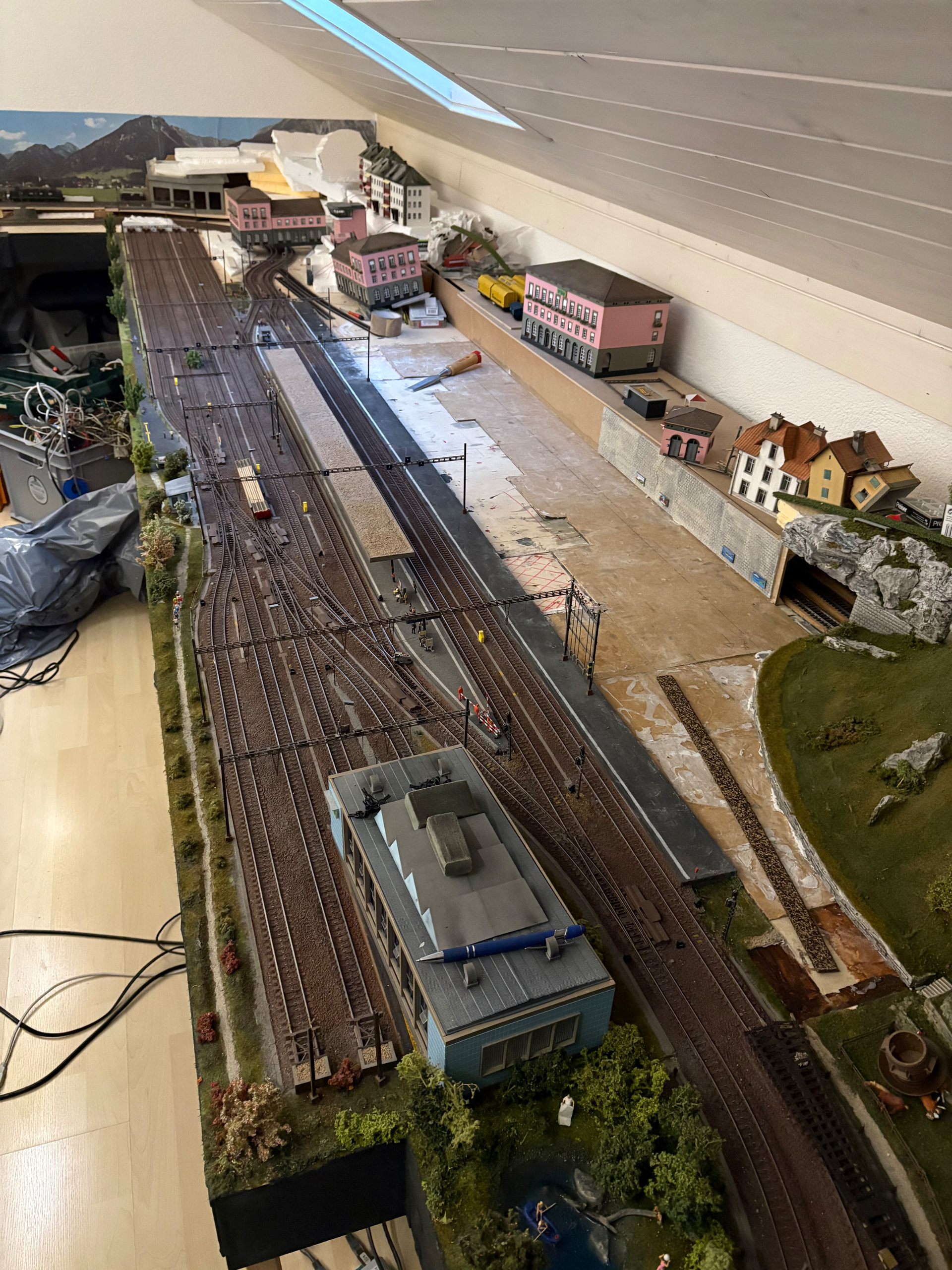 Merci pour vos commentaires. Comme je l ai expliqué, cette maquette a une forme de U. Dans la première vidéo, j ai filmé la partie gauche la plus avancée. Concernant la caténaire… je ne sais pas si je vais poser un fil .