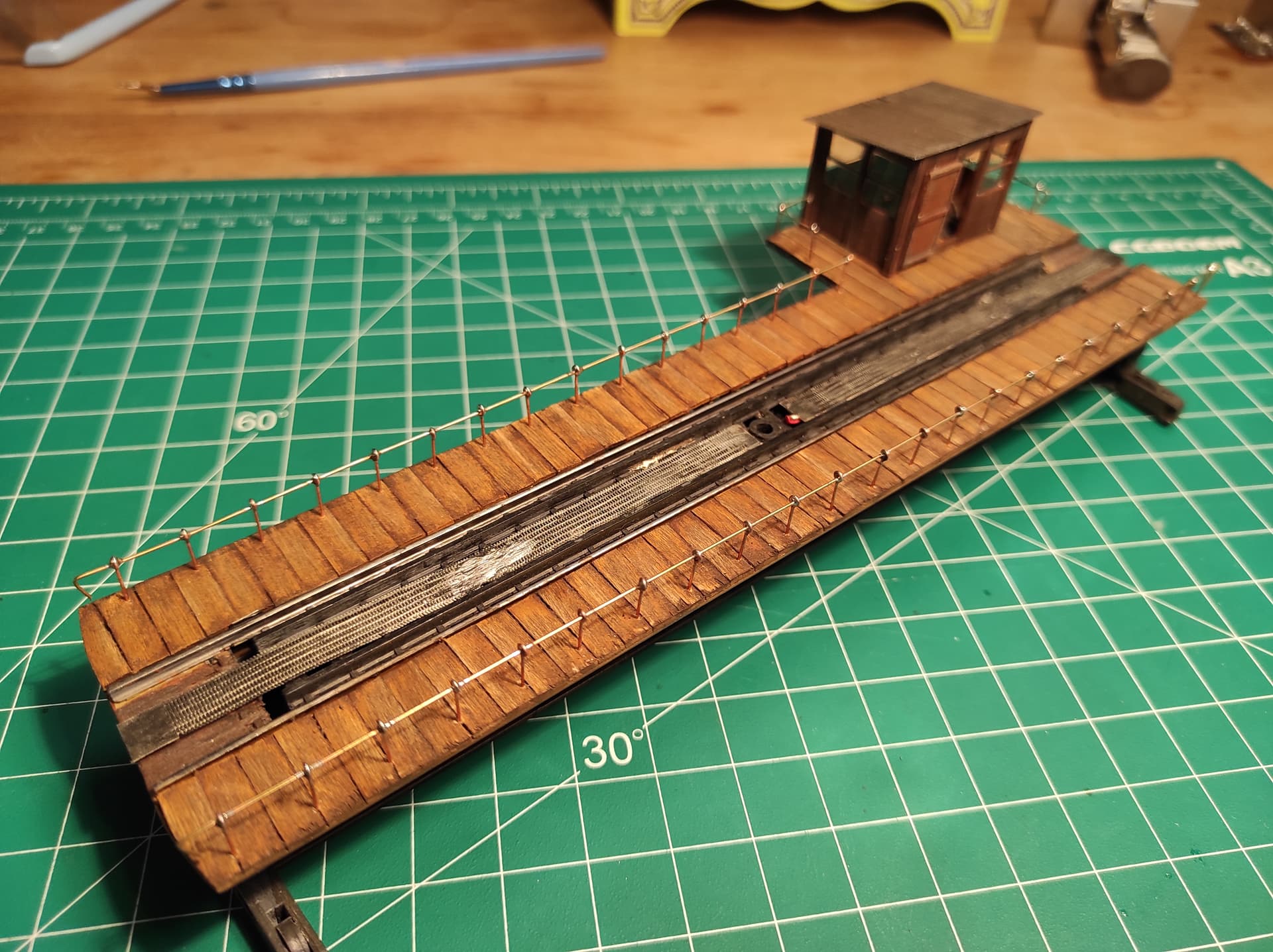 J’ai enfin pris mon courage à deux mains afin de terminer le pont tournant que ma comparse @Julaye m’a chaleureusement offert afin de compenser la perte du mien dûe à une déformation totale des côtés.